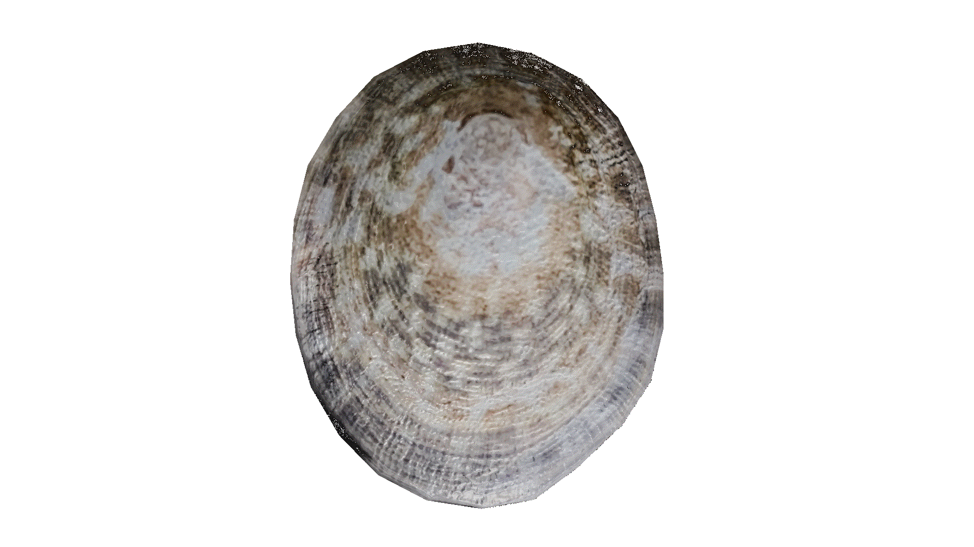 This distinctive species is abundant on our beaches. Originally from the other side of the Pacific, it was accidentally introduced to our area by ships. It can be quickly distinguished from our other clams by its distinctive colour: purple-violet on the inside and brown on the outside. The brown layer on the top peels off like the bark of a birch tree, revealing greyish-purple shell underneath. Even when the colours have faded, this shell is distinctive in its thin, flat shape.